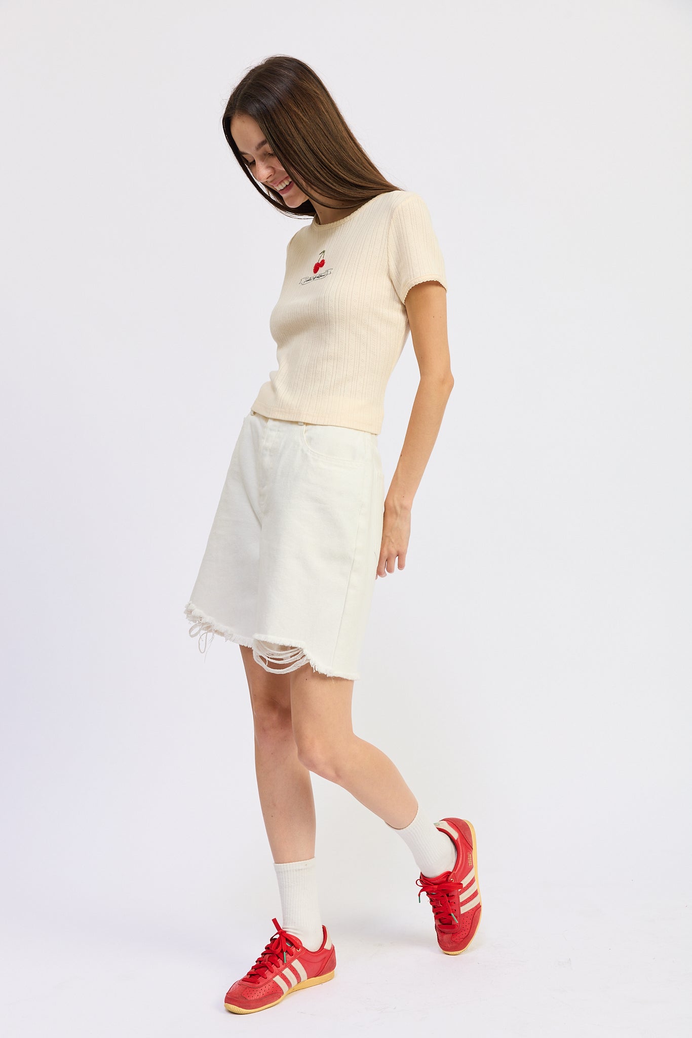 - Beaded Cherry Pointelle Graphic Baby Tee