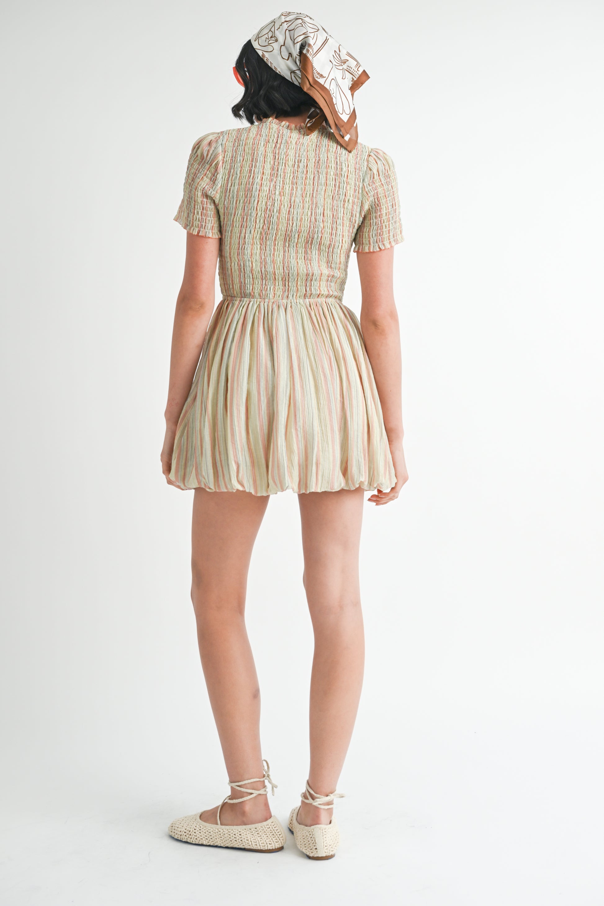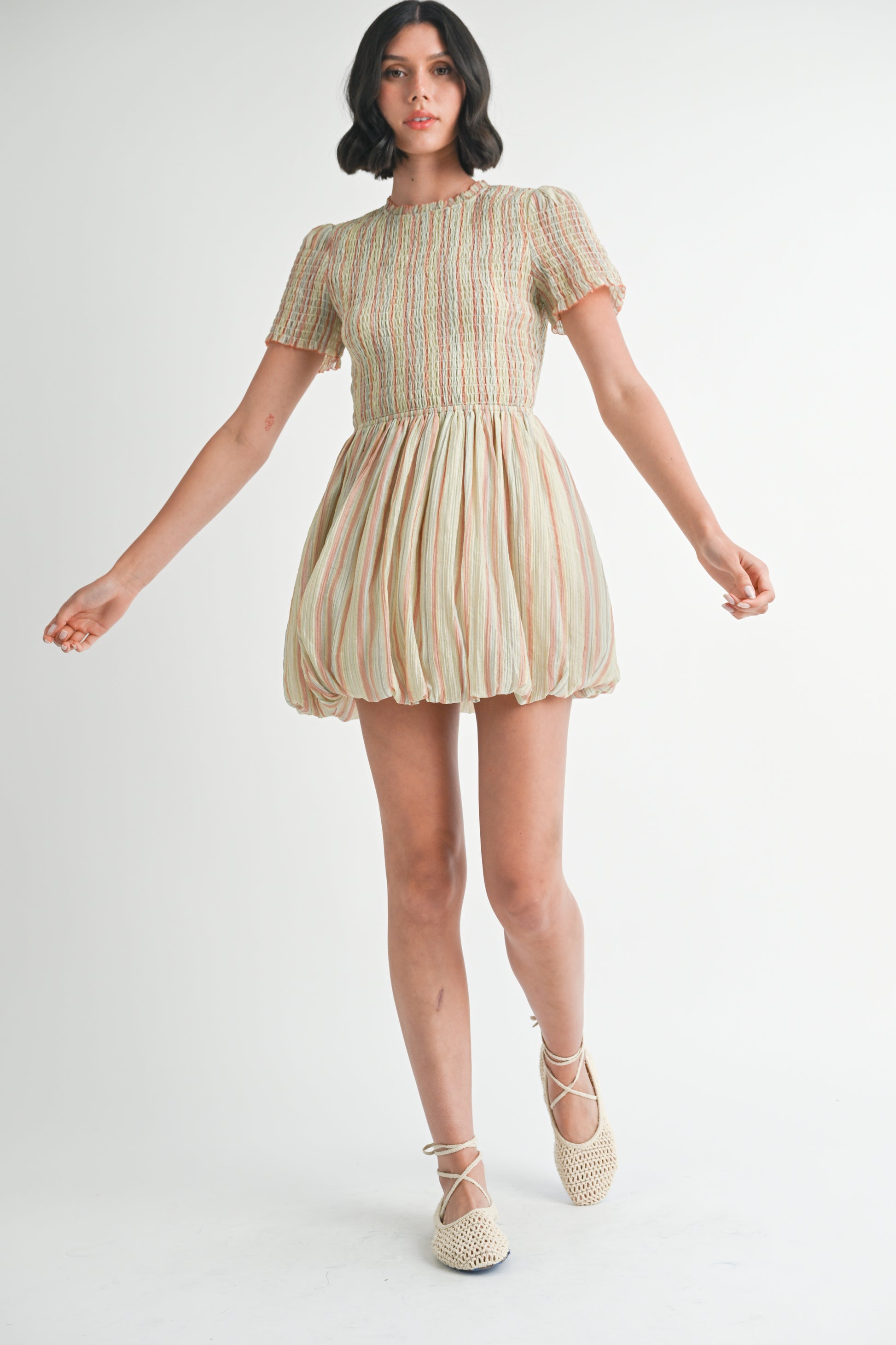 - Smocked Short Sleeve Bubble Mini Dress